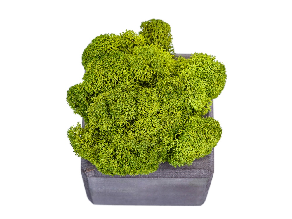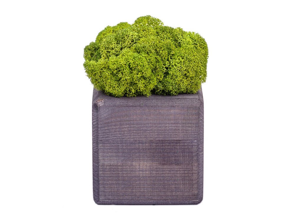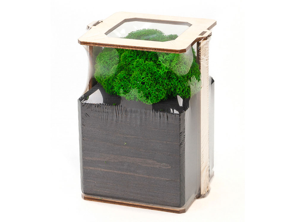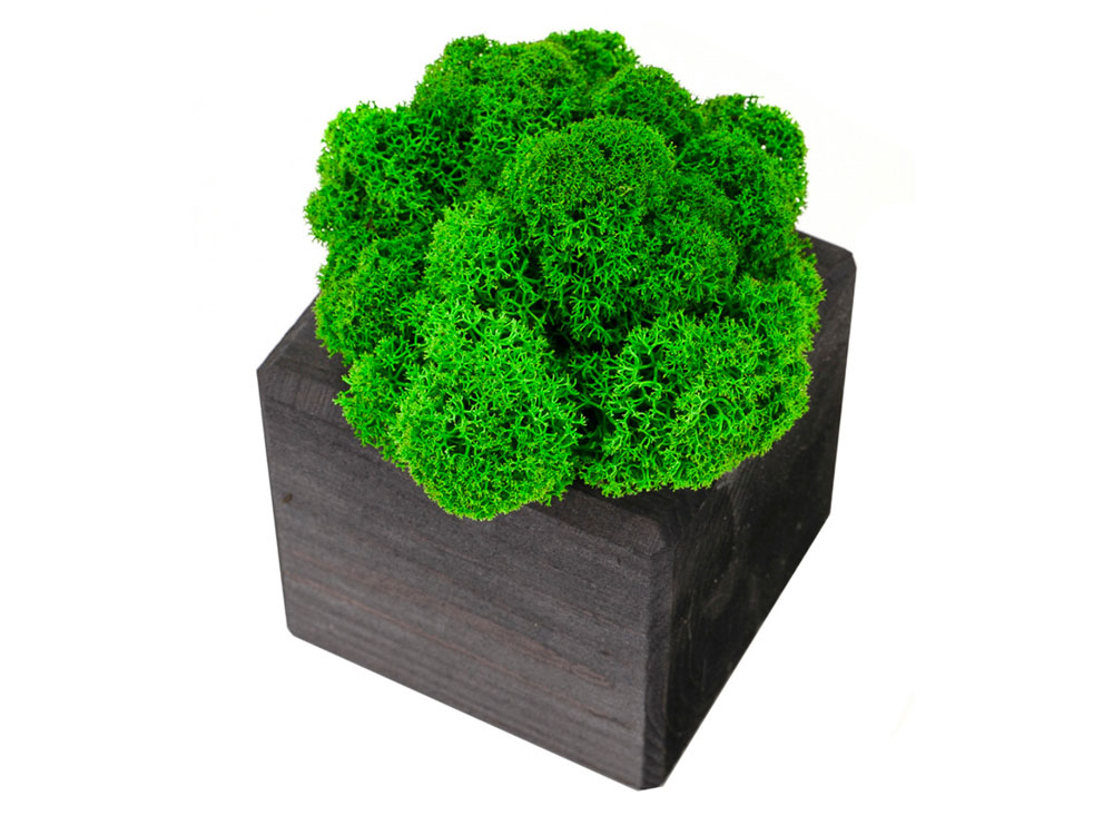 Композиция со мхом создана для любителей официального стиля. Зелень и дерево в интерьере - популярный тренд в области украшения дома или офиса. Специальная обработка мха позволяет не ухаживать за ним до 7 лет. Композиция не требует освещения и полива, успокаивает и дарит положительные эмоции. Изделие состоит из стабилизированного мха ягеля, деревянного куба и деревянного упаковочного каркаса. Отталкивает пыль и придает интерьеру индивидуальность. Размер изделия 8х8х13 см.