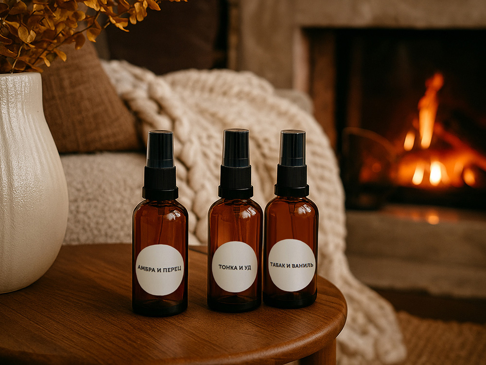 Набор ароматов для дома "Trinity" Создайте атмосферу уюта и изысканности с набором ароматов для дома. Каждый спрей заключён в стильную стеклянную ёмкость и подарит вашему пространству уникальное настроение: Амбра Перец – тёплый и пряный аромат с глубиной амбры и пикантной нотой перца, который окутывает дом чувственностью и энергией. Тонка Уд – загадочный и утончённый аромат, где сладкая теплота тонка-боба встречается с благородным удом, создавая атмосферу роскоши и гармонии. Табак Ваниль – уютная композиция с мягкой сладостью ванили и тёплой дымностью табака, которая делает дом особенно комфортным и притягательным. Эти ароматы идеально подходят для ежедневного использования и подарят любому пространству неповторимый шарм. Стеклянные флаконы добавляют набору элегантности и долговечности, а спрей позволяет равномерно распределять аромат, создавая идеальную атмосферу в любом помещении. Емкость каждого спрея - 50 мл.