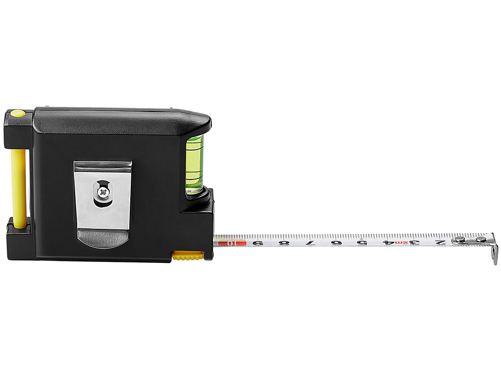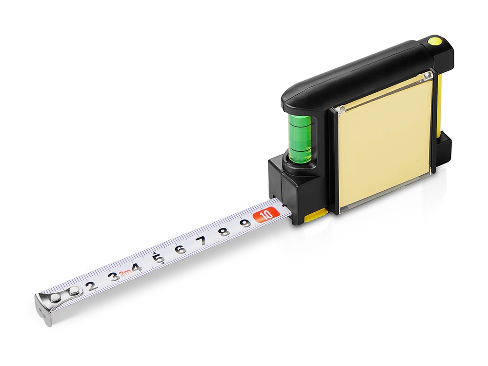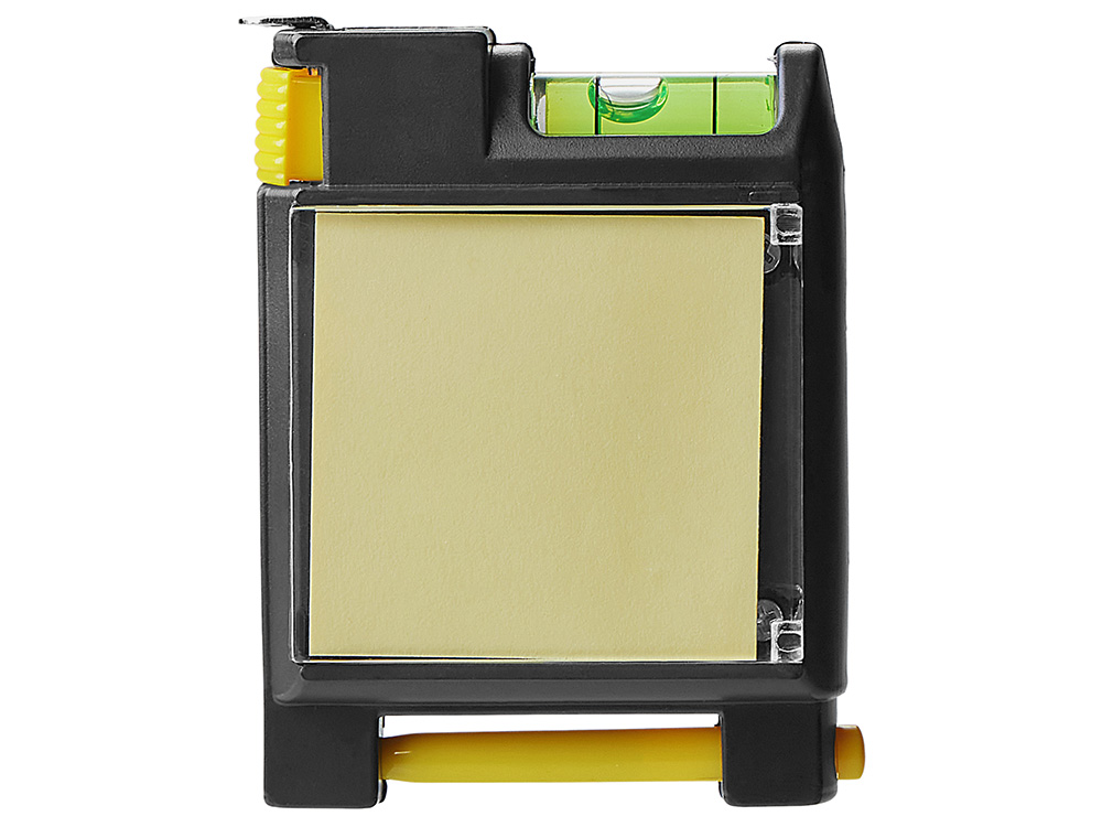 Компактная рулетка на 2 м с полезными функциями: - Блокнот и ручка для записей - Уровень - Клип для крепления к ремню