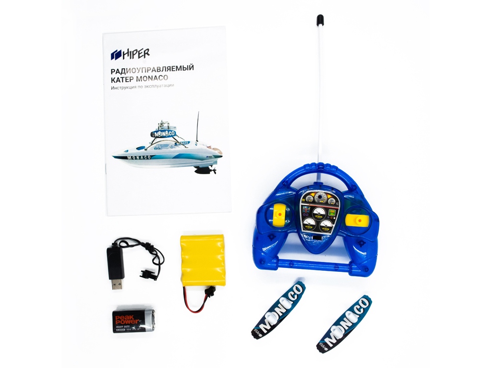 Радиоуправляемый катер Мonaco - новинка от HIPER . Катер обладает отличной управляемостью и маневренностью. Яркий дизайн не оставит равнодушным детей. Подойдет как для подарка, так и для прекрасного времяпровождения на открытом воздухе у водоема. Особенности: • Два мотора! • Масштаб 1:32 • Максимальная скорость до 5 км/ч • Яркий и красивый корпус из ударопрочного пластика • Задний ход • Не нужно ничего докупать! • НЕ ЗАПУСКАТЬ В СОЛЁНОЙ ВОДЕ ! Технические характеристики: - Радиус действия: до 15 метров - Длина катера – 39 см - Ширина катера – 15 см - Аккумулятор : Ni-Cd 4.8В / 700 мАч - Вес катера : 500 г - Время плавания : ~ 12 мин - Время зарядки: ~ 120 мин