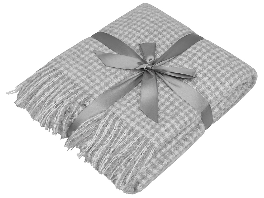 Супер мягкий и теплый плед согреет в холодный день и внесет уют в ваш интерьер. По бокам плед украшен бахромой. В комплекте серая лента, на которой можно нанести ваш логотип.