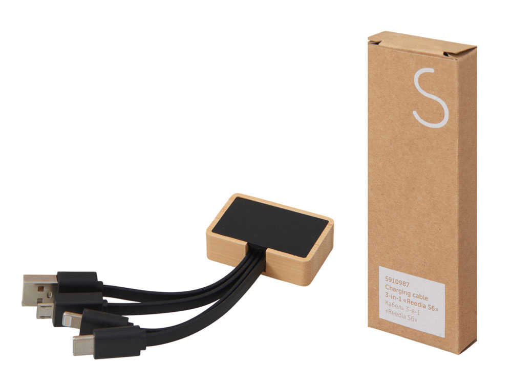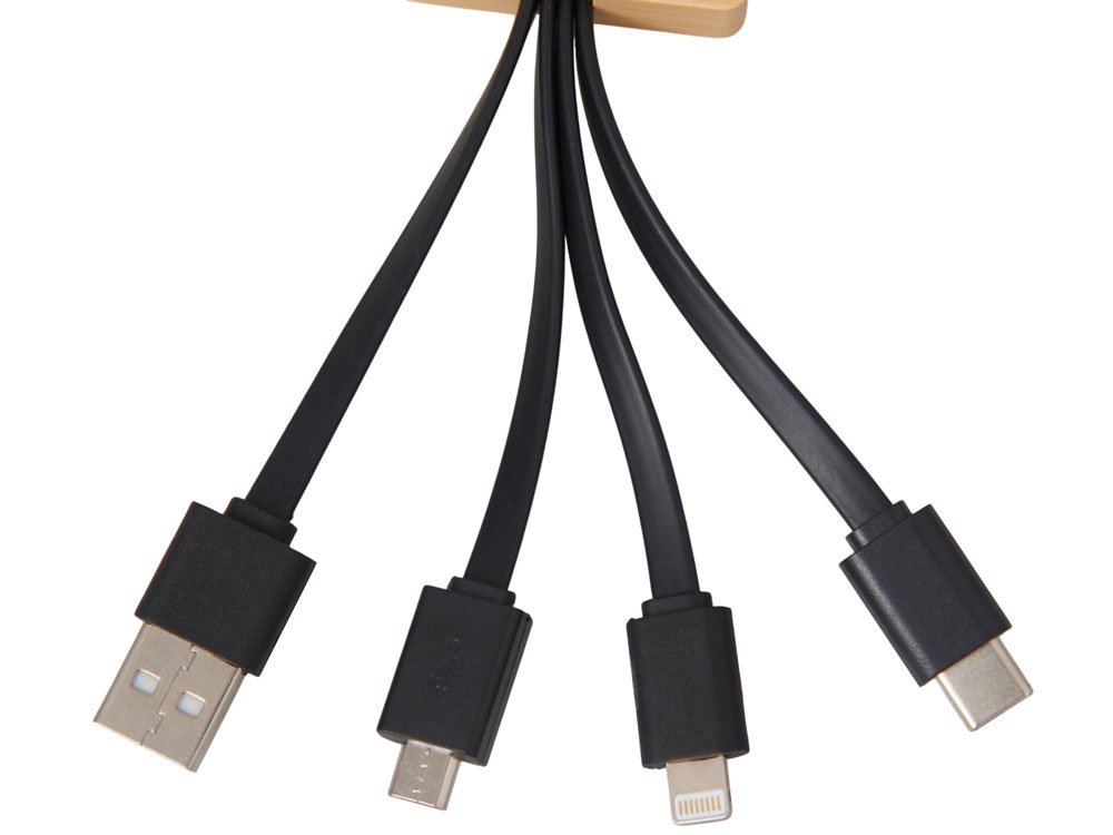 Универсальный зарядный кабель 3-в-1 — элегантное решение для владельцев любых гаджетов. С тремя разъемами (USB-C, micro USB, Lightning), он заменяет три кабеля в одном компактном корпусе, выполненном из натурального бамбука и переработанного ABS-пластика. Это не просто практичный аксессуар — это экосознательный стиль, который подчеркнёт ваш вкус и заботу об окружающей среде. Встроенная белая подсветка с возможностью нанесения логотипа добавляет изюминку: ваш бренд или инициалы мягко светятся при подключении, создавая эффект премиальности и индивидуальности. Идеален для повседневного использования, путешествий и в качестве запоминающегося корпоративного подарка. - 3 разъёма в одном — USB-C, micro USB и Lightning для любых устройств - Экологичный корпус — натуральный бамбук + переработанный ABS-пластик - Логотип с подсветкой — ваш бренд мягко светится при зарядке, усиливая узнаваемость - Компактный и стильный — всегда под рукой, в сумке, на столе или в путешествии - Идеальный корпоративный подарок — полезный, экологичный и персонализированный гаджет