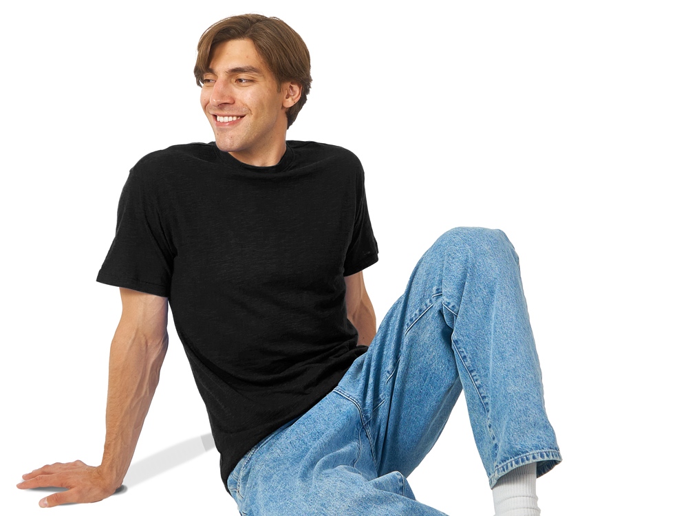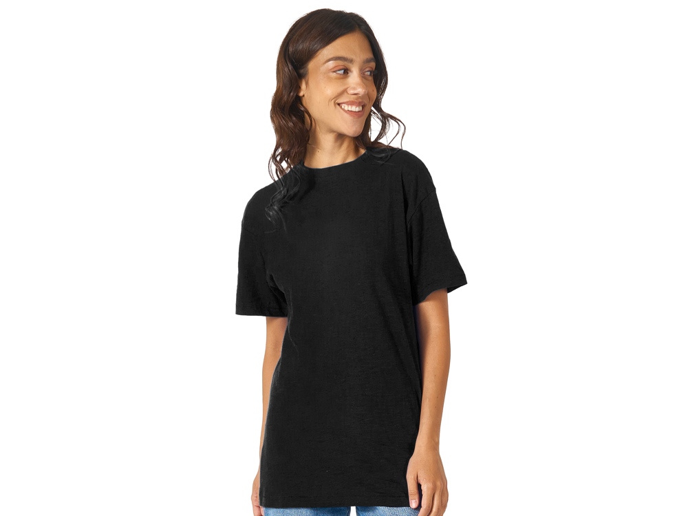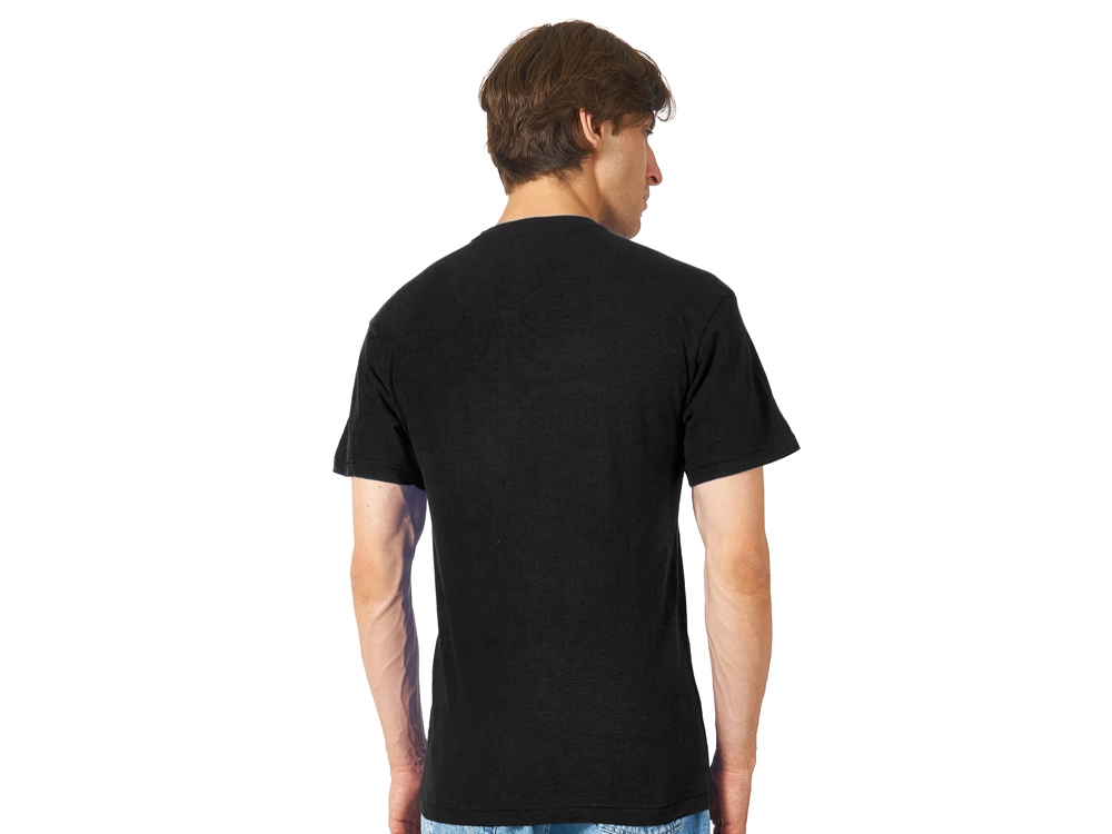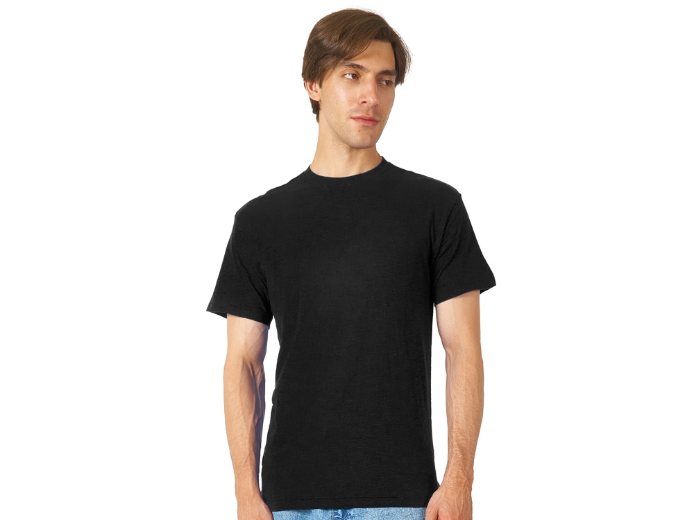 Полотно футболки имеет необычную структуру - с протяжками, но при этом гладкую поверхность, что обеспечивает идеальную поверхность для нанесения: прямая печать, трафаретная или термотрансфер прекрасно ложатся на такое полотно. Декоративная отстрочка по низу рукавов и изделия, а также отстрочка по горловине позволяют футболке дольше сохранять форму. - необычная полотно - идеальный поверхность для нанесения - универсальный прямой силуэт