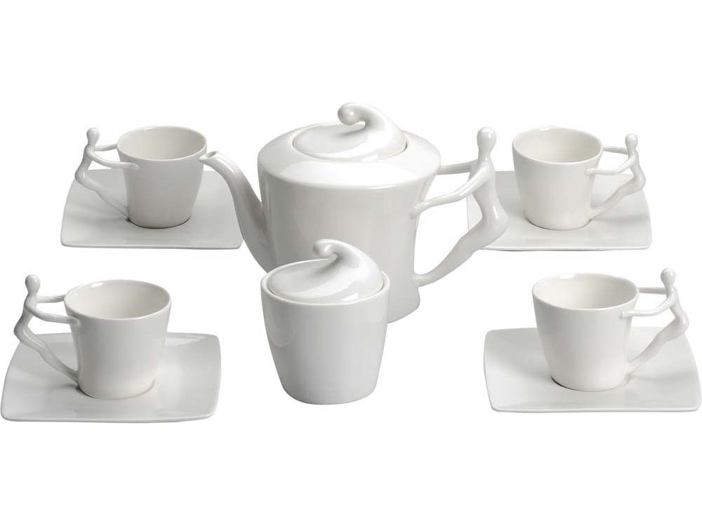 Это не просто посуда, а настоящее произведение искусства для вашего стола. Белоснежный сервиз создан для тех, кто ценит не только вкус, но и эстетику каждого момента. Уникальный дизайн: Ручки чашек и чайника выполнены в виде стилизованной фигуры человека. Это придает сервизу особый характер и глубину, превращая процесс чаепития в диалог с искусством. Полный комплект: В набор входит все необходимое: 4 чашки, 4 блюдца, чайник и сахарница. Эксклюзивная упаковка: Сервиз поставляется в деревянной коробке. Вы можете нанести на нее логтип или памятную надпись. Это готовая идея для безупречного корпоративного подарка. Универсальность и стиль: Белоснежный цвет и лаконичный дизайн делают сервиз уместным в любом интерьере — от классики до модерна.