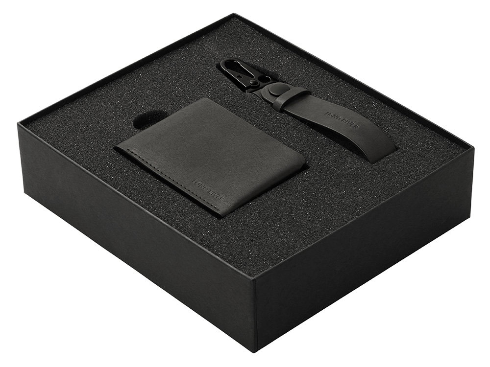 Идеальный дуэт для тех, кто ценит компактность и функциональность. Два аксессуара, которые освободят ваши карманы от громоздких вещей. Складной бумажник Маккензи: Невероятно тонкий, но вместительный. Внутри — три отделения для купюр любого формата (включая евро) и нескольких карт. Сшит вручную из качественной кожи, совершенно не ощущается в кармане. Ключный ремешок Ориноко: Простое и гениальное решение для ключей. Прочный черный кожаный ремешок с надежным карабином, который невозможно расстегнуть случайно. Крепится к шлевке или ремню — ключи всегда под рукой и не потеряются. Комплектация: складной бумажник, ключный ремешок с карабином. Упаковка: Стильная коробка из переплетного картона, готовая к персонализации.