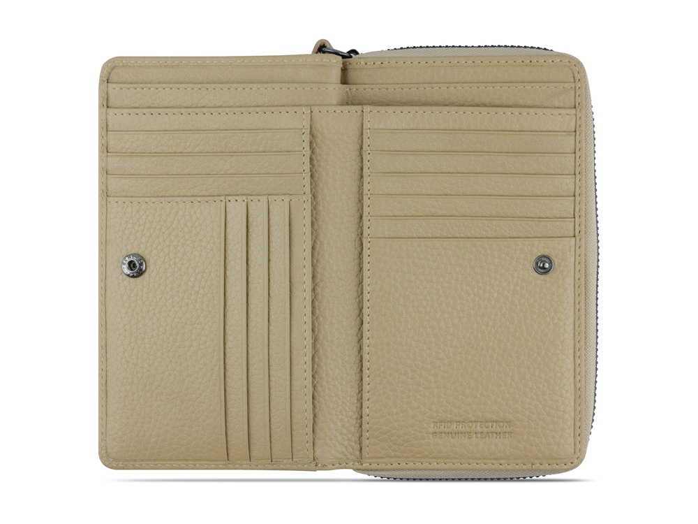 ЖЕНСКИЙ КОШЕЛЕК ELSA С ЗАЩИТОЙ ДАННЫХ RFID Готовы к поездке в выходные? Мы раскрасим вашу ленту в соцсетях невероятной коллекцией ELSA. Коллекция ELSA предлагает широкий ассортимент аксессуаров и сумок разных форм и размеров, от элегантных кошельков и изящных наплечных сумочек для выхода в свет до вместительных шопперов и дорожных сумок для путешествий. Все модели серии изготовлены из высококачественной мягкой воловьей кожи и представлены в классическом черном, белом и бежевом цветах. Элегантное тиснение логотипа Bugatti придает очарование каждой модели. Коллекция выделяется продуманной функциональной организацией внутреннего пространства и защитой от радиочастотной идентификации RFID. Кошельки и ключницы оснащены специальным защитным слоем из фольги, который предотвращает незаконное сканирование вашей личной информации и препятствует списанию денежных средств с банковских карт. Какой бы аксессуар или сумку вы бы ни предпочли, будьте уверены, что с коллекцией ELSA вы точно окажетесь в центре внимания. СВОЙСТВА Функциональная организация: основное отделение на молнии, 14 слотов для карт, 4 кармана, 2 отделения для купюр, отделение для монет, ремешок на запястье, защита данных RFID. Материал: воловья кожа/полиэстер Размер: 15,5 х 3 х 9,5 см Вес: 0,156 кг
