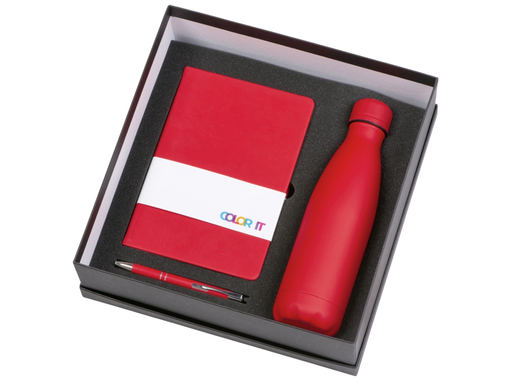 Color It — линейка, в которую входят хиты мерча в десяти самых популярных цветах. Еще никогда собрать сет под свой брендбук не было так просто. Широкая цветовая палитра серии позволяет создать идеальный набор в едином оттенке Pantone. Все товары имеют тактильно приятное покрытие софт-тач. Сет поставляется в коробке: мы продумали все, включая подарочную упаковку, за вас — осталось нанести лого! Классическая форма термобутылки сочетается с продуманной и технологичной конструкцией: вакуумная теплоизоляция и двойные стенки бутылки обеспечивают качественное сохранение температуры напитка до 24-х часов! Бизнес-блокнот в гибкой обложке имеет ляссе в тон обложки и среза. Бумажный блок разлинован в линейку и выполнен из бумаги, полученной из древесины из специальных восполняемых лесных ресурсов, имеет сертификат FSC. Шариковая ручка имеет сменный стержень, поэтому такой мерч прослужит дольше обычной одноразовой ручки, долго напоминая о вас клиентам. - софт-тач покрытие на всех предметах набора; - объём бутылки: 500 мл; - блокнот А5 128 листов; - ручка с необычным слайдером; - подарочная упаковка из картона, оклеенного дизайнерской бумагой уже включена в набор. График теплопотерь при температуре окружающей среды ≈ 25° 1ч. 2ч. 3ч. 4ч. 5ч. 6ч. 7ч. 8ч. 24ч. 50° 60° 70° 80° 90° 100°