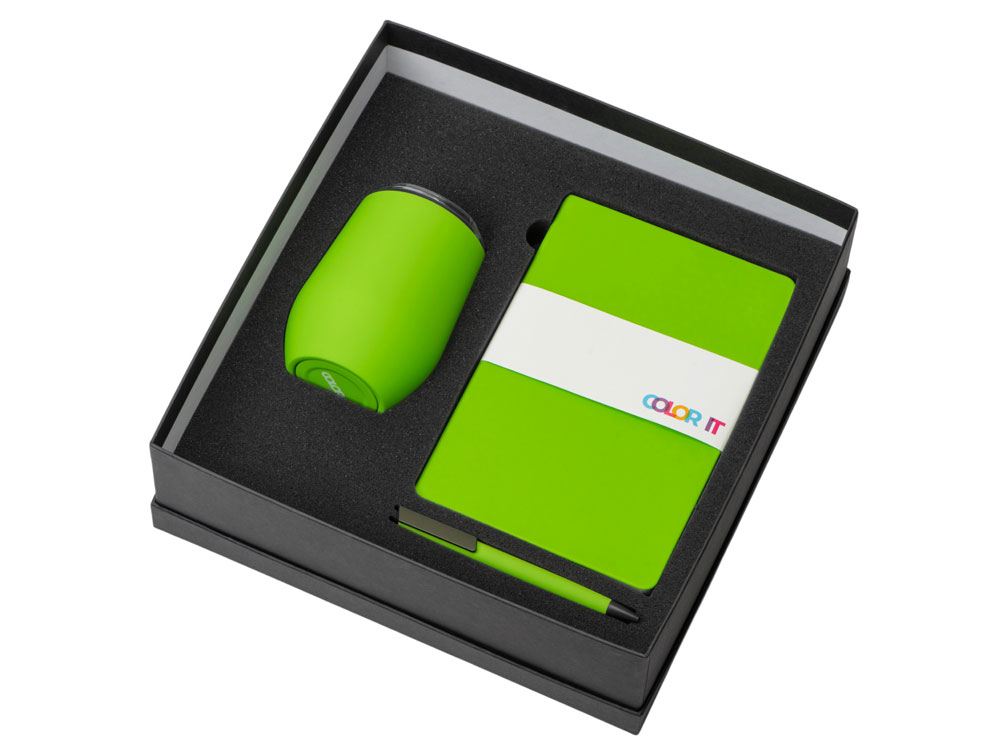 Color It — линейка, в которую входят хиты мерча в десяти самых популярных цветах. Еще никогда собрать сет под свой брендбук не было так просто. Широкая цветовая палитра серии позволяет создать идеальный набор в едином оттенке Pantone. Все товары имеют тактильно приятное покрытие софт-тач. Сет поставляется в коробке: мы продумали все, включая подарочную упаковку, за вас — осталось нанести лого! Термокружка оснащена крышкой-слайдером с силиконовым кольцом. Благодаря вакуумной изоляции и двойным стенкам, она сохраняет напитки горячими в течение 6 часов, а холодными - 12 часов. Бизнес-блокнот в гибкой обложке имеет ляссе в тон обложки и среза. Бумажный блок разлинован в линейку и выполнен из бумаги, полученной из древесины из специальных восполняемых лесных ресурсов, имеет сертификат FSC. Тонкое письмо ручки обеспечивается пишущим узлом с толщиной письма 0,5 мм с нажимным механизмом. Ручка имеет сменный стержень, поэтому такой мерч прослужит дольше обычной одноразовой ручки, долго напоминая о вас клиентам. - объём термокружки: 370 мл; - блокнот А5 128 листов; - ручка с необычным слайдером; - подарочная упаковка из картона, оклеенного дизайнерской бумагой уже включена в набор