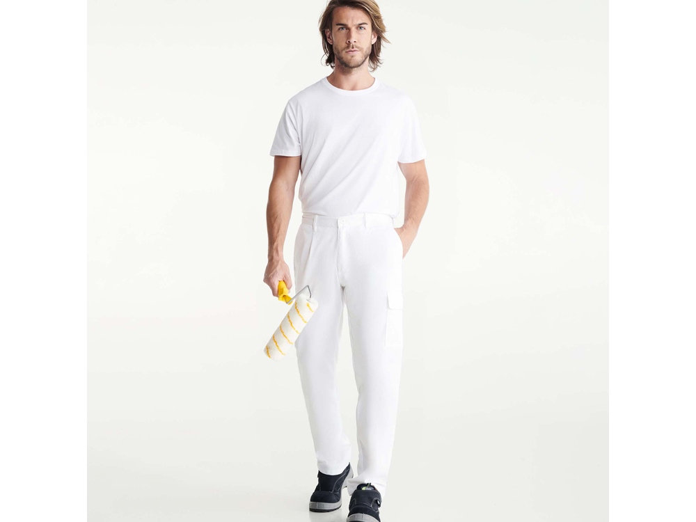 Брюки из прочной ткани. 1. Регулируемый эластичный пояс сзади. 2. Два кармана спереди. 3. Один боковой карман с клапаном на липучке. 4. Один функциональный карман сзади. 5. Боковой карман: узкий и без клапана.