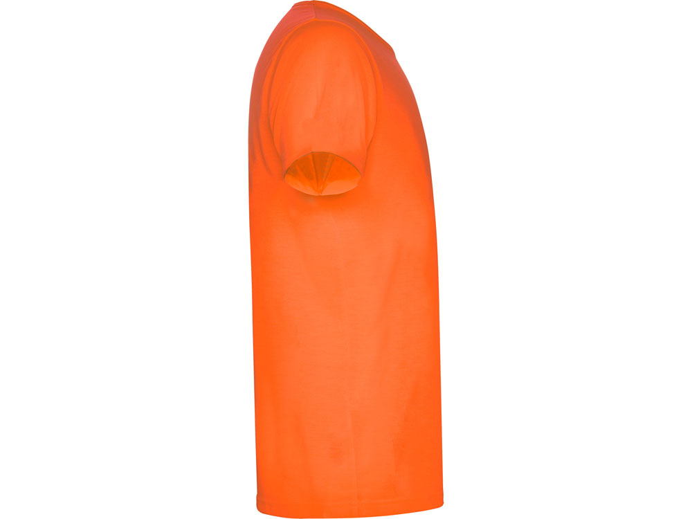 Футболка с коротким рукавом и круглым вырезом горловины. Модель в неоновых цветах выполнена из полиэстера, на ощупь напоминающего хлопок.