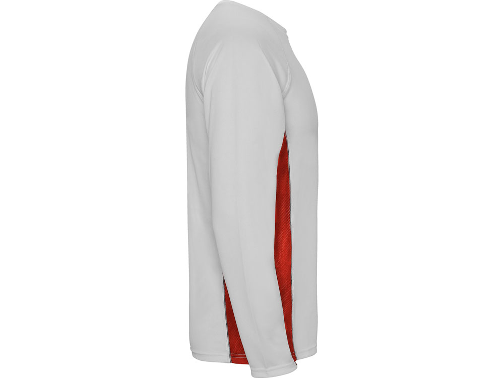 Футболка с длинным рукавом реглан из двух комбинируемых полотен. Основное полотно из структурного полотна, а боковые вставки и внутренняя сторона рукава из микроперфорированного полотна. Круглый вырез горловины дополнительно укреплен плоской строчкой. Комфортная и удобная модель