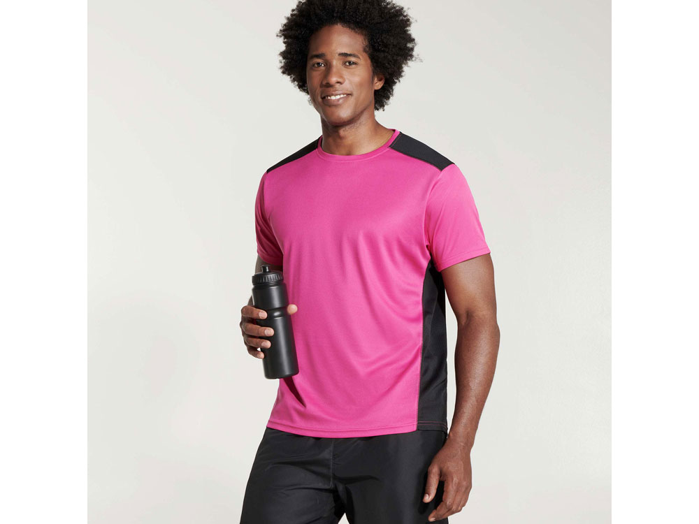 Футболка с коротким рукавом из технологичного полотна. Круглый вырез горловины. Структурное полотно на полочке, и дышащее 3D сетчатое полотно на спинке отлично впитывает влагу. Декоративная зиг-заг отстрочка по плечам и боковым швам. Спинка немного длиннее В ассортименте так же представлена аналогичная детская модель "Detroit".