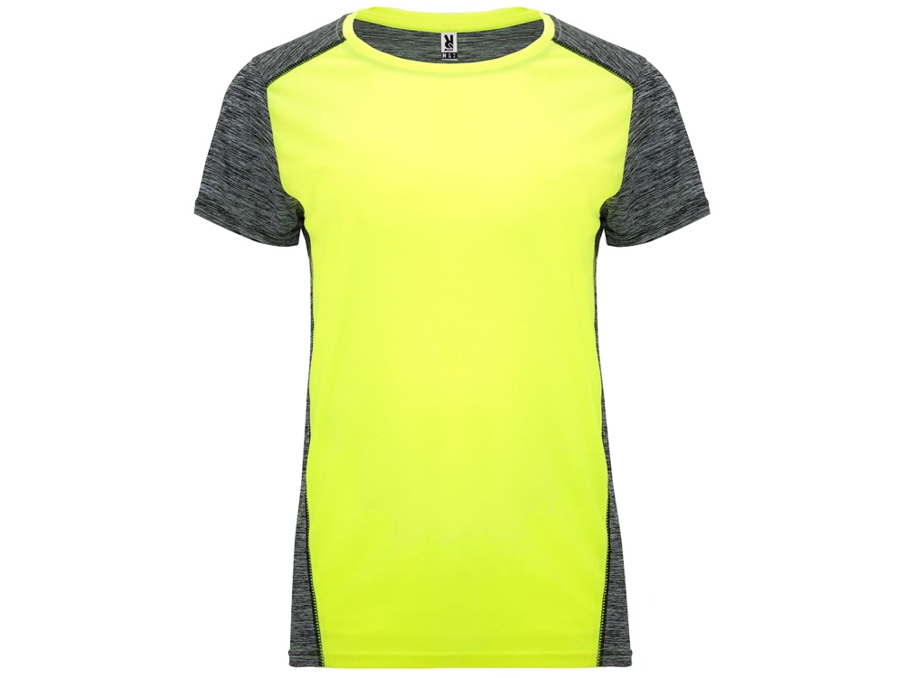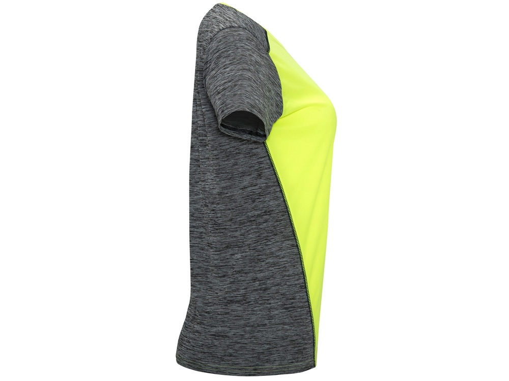 Футболка с коротким рукавом из технологического полотна. Круглый вырез горловины. Комбинация двух полиэстеровых полотен. Основное полотно на полочке со структурой, дополнительное полотно на спинке, рукавах и плечах с меланжевым эффектом. Задняя часть немного длиннее. Легко сохнущее дышащее полотно. В ассортименте так же присутствует аналогичная мужская и детская модели "Zolder"