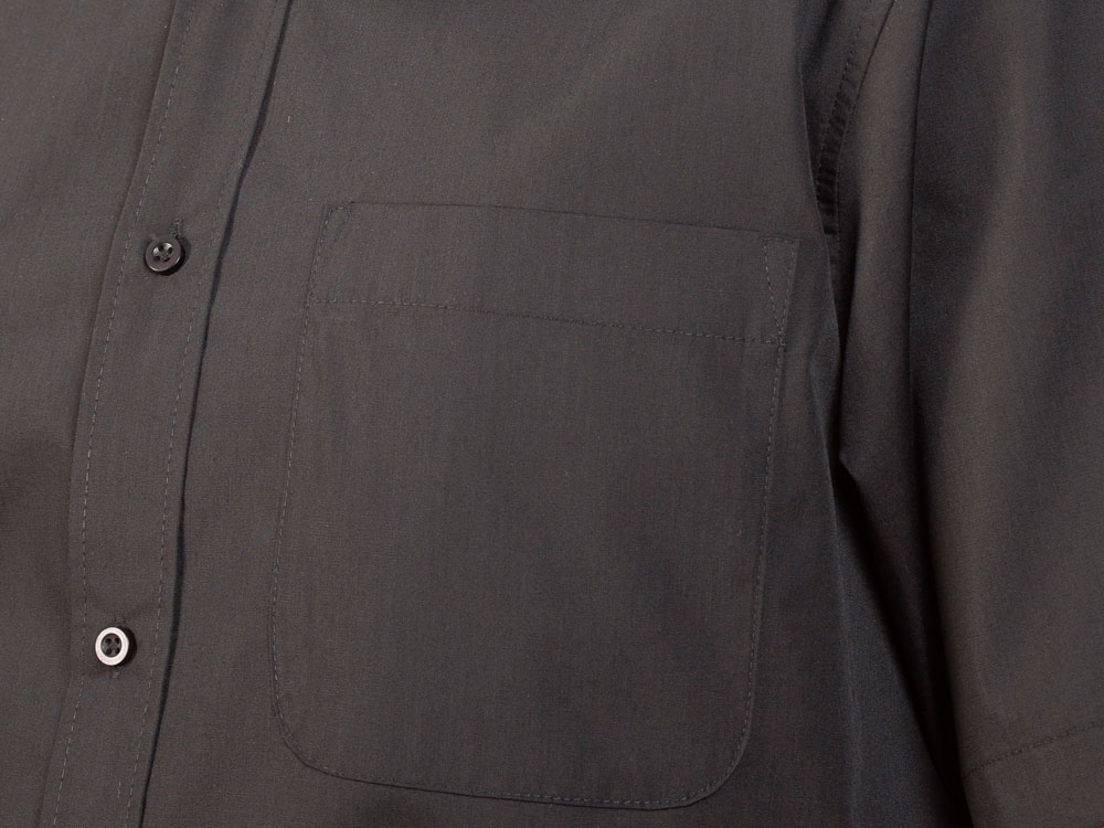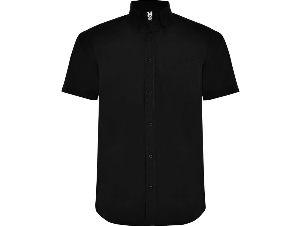 Рубашка мужская с коротким рукавом на семи пуговицах. Накладной карман на груди слева, закругленный низ изделия. Уголки воротника продублированы пуговицами. В ассортименте представлена аналогичная женская модель рубашки "Aifos".