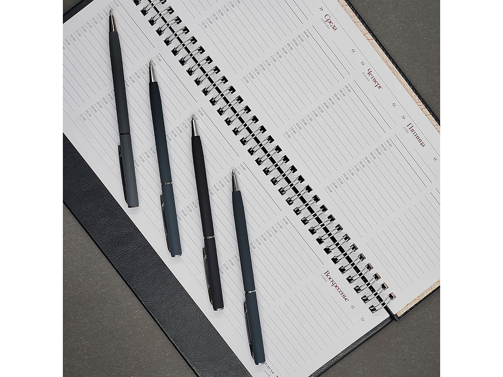 Автоматическая металлическая ручка "Bruno Visconti" серии "Palermo" однотонного цвета порадует любителей всего изящного и утонченного. Покрытие корпуса Soft Touch гарантирует дополнительный комфорт в работе с ней. Стержень легко выдвигается благодаря поворотному механизму. Синие пигментные чернила Dokumental (Германия) и пишущий узел Premec (Швейцария) обеспечивают качественное и мягкое письмо.