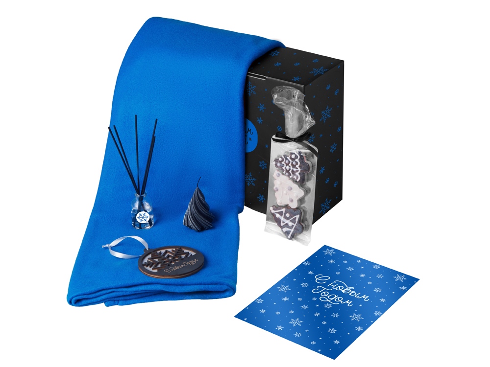 плед - флис 100% полиэстер; подвеска - березвовая фанера; открытка - бумага; мешок - нетканый материал (спанбонд)