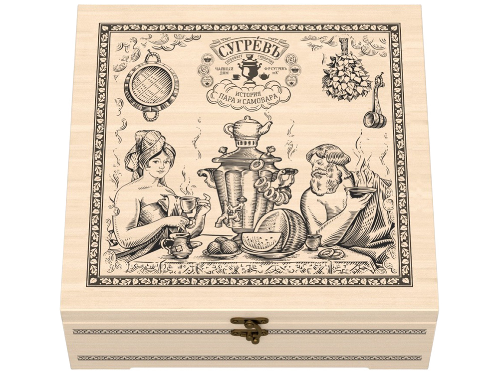 Подарочный набор с чаем и эфирными маслами «История пара и самовара» в деревянной шкатулке (арт. 700565)