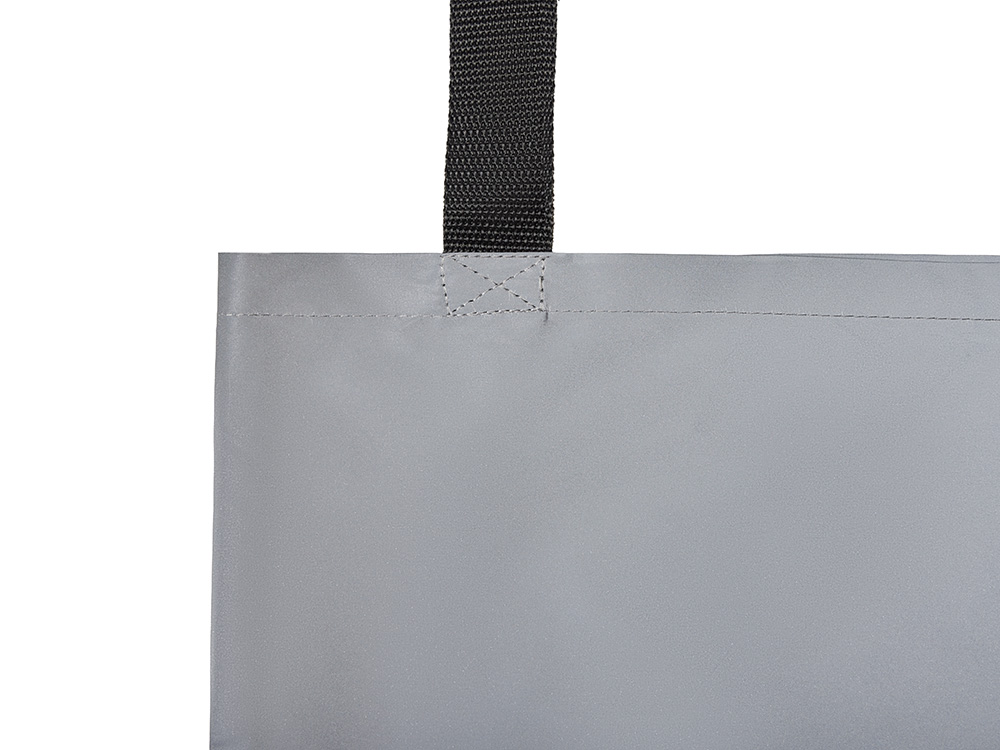 Сумка для покупок из светоотражающей ткани обеспечивает дополнительную защиту в темное время суток. Прочные ручки длиной 68 см. Металлическое д-кольцо на хлястике предусмотрено для крепления ремувок с вашим логотипом.