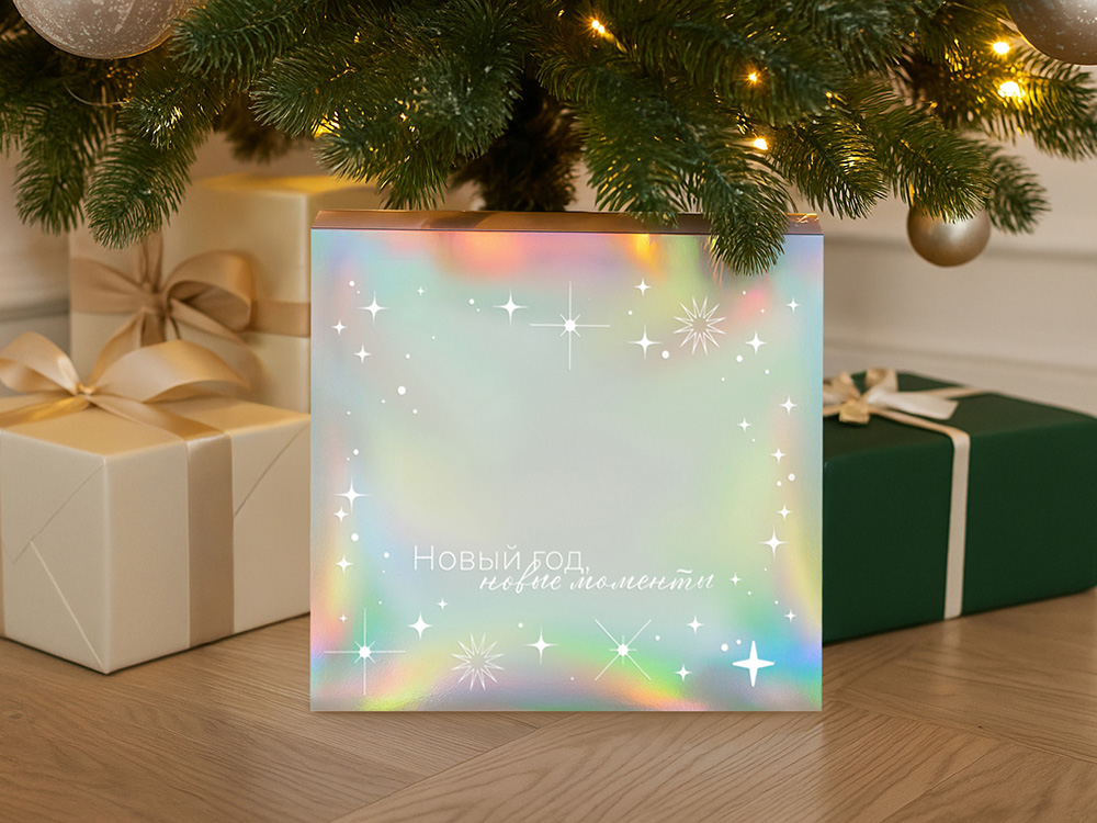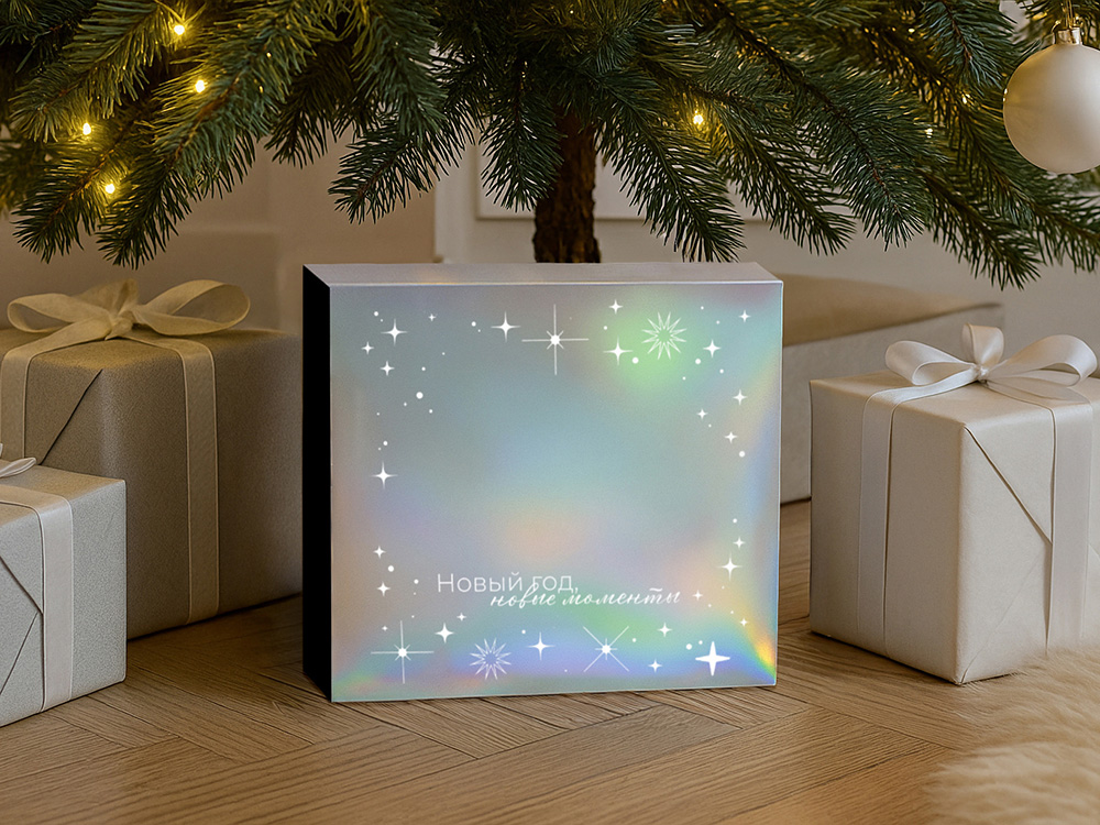 Упаковка — это первое впечатление о подарке. В преддверии Нового года особенно важно создать атмосферу праздника — стильная и аккуратно выполненная коробка с голографическим шубером сразу вызывает ощущение заботы, уюта и волшебного ожидания. Подарочная коробка из прочного микрогофрокартона, кашированная бумагой с матовой ламинацией, выглядит элегантно и надёжно защищает содержимое. Новогодний голографический шубер с мерцающими серебристыми переливами придаёт ей праздничный блеск и делает каждый подарок по-настоящему особенным. В такую коробку можно поместить сувениры, кружку, баночку мёда или варенья, а добавив декоративный наполнитель — подчеркнуть изысканность и тёплое новогоднее настроение. Коробка отлично подходит под нанесение логотипа или фирменного дизайна, чтобы ваш подарок не только порадовал получателя, но и напомнил о компании или событии ещё долго после праздников.